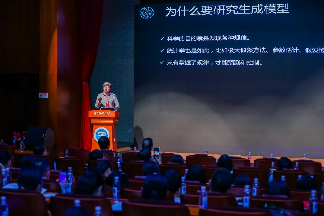 接着,由中央财经大学统计与数学学院刘扬教授主持,由全国工业统计学教学研究会副会长、中国计算机学会高级会员、中央财经大学统计与数学学院张忠元教授带来精彩报告《Stable Diffusion 的前世今生》,介绍了生成模型的基本原理和常见方法,包括变分自编码器、生成对抗网络和扩散模型,这些方法可以用来建模和生成各种类型的数据,从简单的图像和文本到复杂的时间序列和网络结构,并且讨论了生成模型的挑战和未来发展方向。