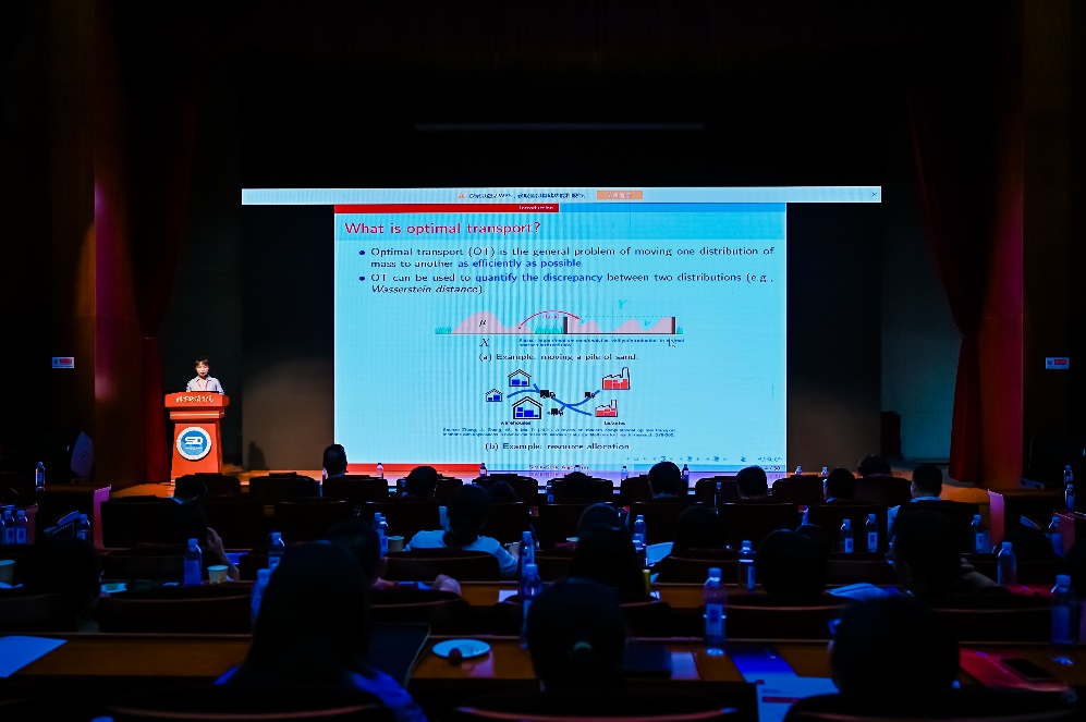 由首都师范大学数学科学学院胡涛教授主持,由中国人民大学统计与大数据研究院孟澄助理教授的博士生李梦雨同学带来精彩报告《Efficient algorithms for large-scale optimal transport problems》,讲述了为了减轻计算负担,引入Spar-Sink算法,该算法利用一种新颖的重要性稀疏化方案加速了常用的Sinkhorn算法。这种方法可以有效应用于熵最优传输问题、非平衡最优传输问题、Gromov-Wasserstein距离近似、Wasserstein重心估计和生成建模等多个领域。李博士介绍了该方法在超声心动图中的应用,可以有效识别和可视化心脏周期,通过这些周期可以诊断心力衰竭和心律不齐等疾病。