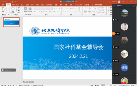 为进一步提高学院2024年国家社会科学基金项目的申报质量,2月21日下午,学校科研处与统计与数据科学学院举办了国家社会科学基金项目申报辅导会。科研处处长助理杨扬、统计与数据科学学院院长助理韩嵩教授以及6位申报国社基金的教师参加了会议,会议由韩嵩教授主持。