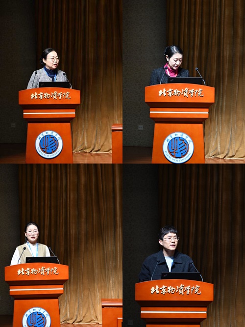 开幕式结束后, 欧乐影视 国家物流枢纽中心建设研究团队带来系列主题报告。欧乐影视 院长韩嵩主持报告环节,董曼茹博士、李泽锦博士、郭茜教授及韩嵩教授依次登台分享研究成果。董曼茹博士以“国家物流枢纽中心建设发展现状与统计分析”为题,系统剖析枢纽建设战略定位与空间布局特征;李泽锦博士聚焦“国家物流枢纽建设助推高质量就业”,通过实证分析揭示其影响机制与经验启示;郭茜教授围绕极端气候冲击下物流枢纽气象风险展开研究,构建多维气候风险评估体系;韩嵩教授则回顾学校在国家物流枢纽中心建设统计体系研究中的阶段性成果,展望未来学科发展与科研创新方向。