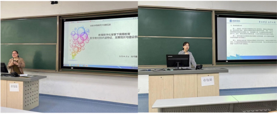 5月6日,尚书霞老师作了题为《教育数字化背景下教材的内涵特征、现状与建设》的报告,介绍了在教育数字化背景下,数字教材的内涵特征和发展现状,积极探索高等教育数字教材建设理念和路径。提出借鉴数字教材的相关理念,为 欧乐影视 教育教学提供更加优质丰富的数字化资源,加快 欧乐影视 教育数字化转型;王福荣副教授做了题为《基于知识图谱的新型教材建设与应用》的报告,梳理了国内外新型教材推广政策与实践,探索“基于知识图谱的新型教材”的概念内涵、体系特征及未来发展方向与路径。