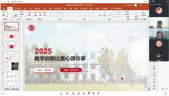 邀请华东师范大学统计学院副院长周迎春教授举办全国高校教师教学创新大赛经验分享交流会。姜涛副院长主持会议,学院教师参加了此次辅导。
