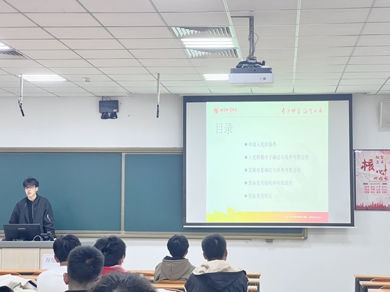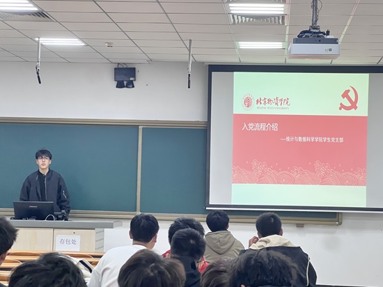 为了引导广大青年学生积极向党组织靠拢,深入了解党的知识和入党流程,2024年10月8日晚自习,统计与数据科学学院学生党支部开展入党启蒙教育活动。此次宣讲由学生党员高麒勍主讲。