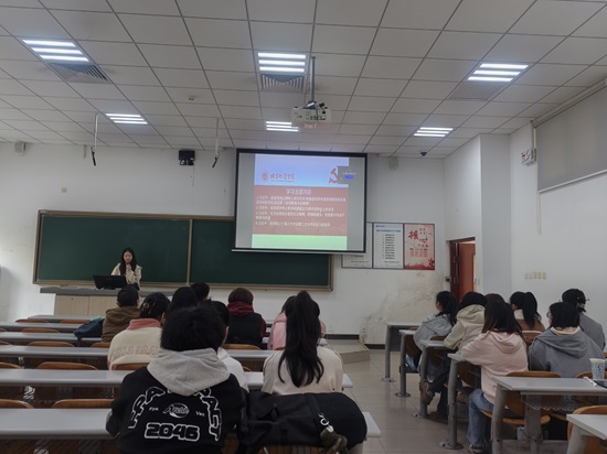 统计与数据科学院应用统计学本科生党支部、数据科学与大数据技术本科生党支部、统计学和应用统计研究生党支部于2024年10月25日中午,在二教101开展2024年10月“请党放心 强国有我”系列专题党课。统计与数据科学学院党总支副书记甄姿、数据科学与大数据技术党支部书记徐文彬,以及全体学生党员参加了学习,本次专题党课由党员马萍主讲。