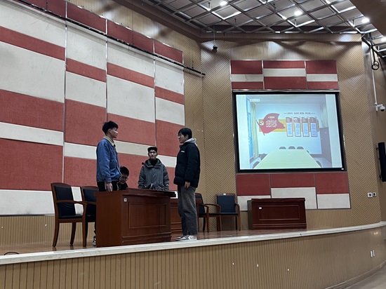 11月19日中午,话剧首次联排活动正式开启,全体演员皆全身心投入其中。戏剧团成员与甄姿老师在观摩后提出了专业的表演建议与针对性的改进方向。话剧情节围绕主角遭遇竞选学生会职务、食堂饮食健康安全问题以及学科竞赛等情境下同学抛出的 “小恩小惠” 类 “糖衣炮弹” 展开,生动刻画了廉洁之士不惧强权、勇揭腐败黑幕的形象,其激昂台词令在场排练人员深切体悟到廉洁的强大力量。