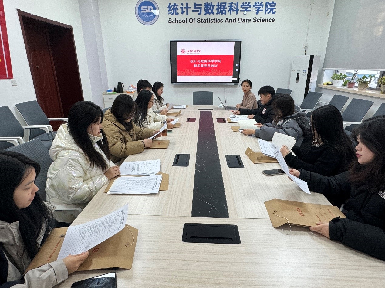 为进一步加强党员发展材料的规范性,提高党员发展质量,2023年10月25日,统计与数据科学学院在南实108举行2023年新发展党员专题培训会,讲解发展党员材料的相关要求,会议由统计与数据科学学生党支部书记毕英乐主讲。