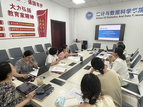 为抢抓就业工作关键期,全力促进2024届毕业生高质量充分就业,2024年6月20日下午,统计与数据科学学院在108会议室召开2024届毕业生第六次就业工作推进会。统计与数据科学学院党总支书记续杨,院长郭茜,副书记甄姿,系主任尹洁婷、沈丛丛,教工党支部书记黄羽翼、王莎,班主任陶丽、王美玲,辅导员徐文彬参加此次会议。会议由统计与数据科学学院党总支副书记甄姿主持。
