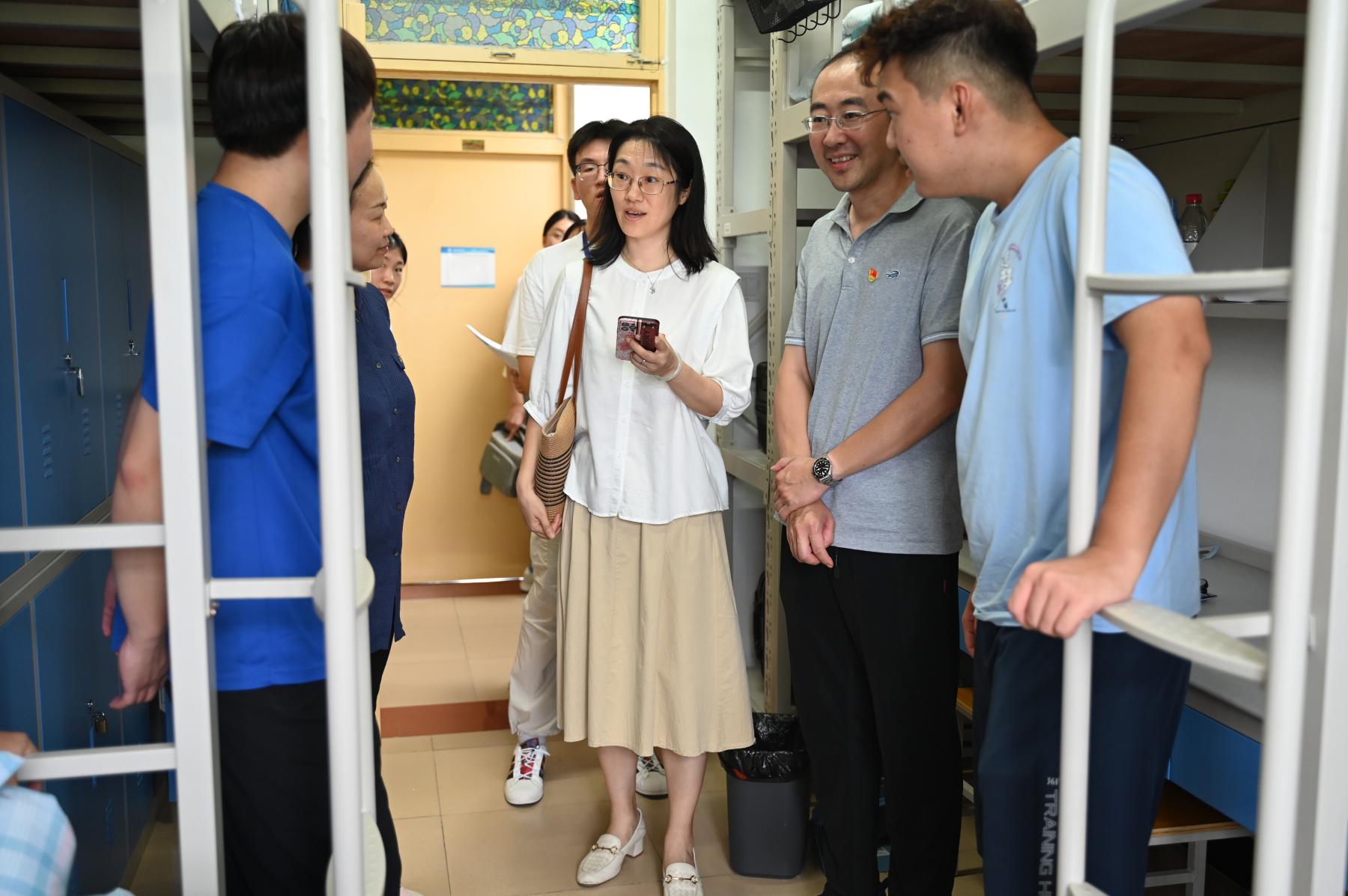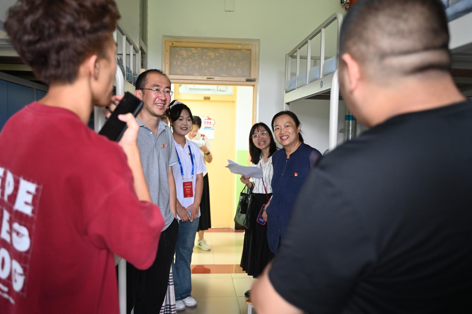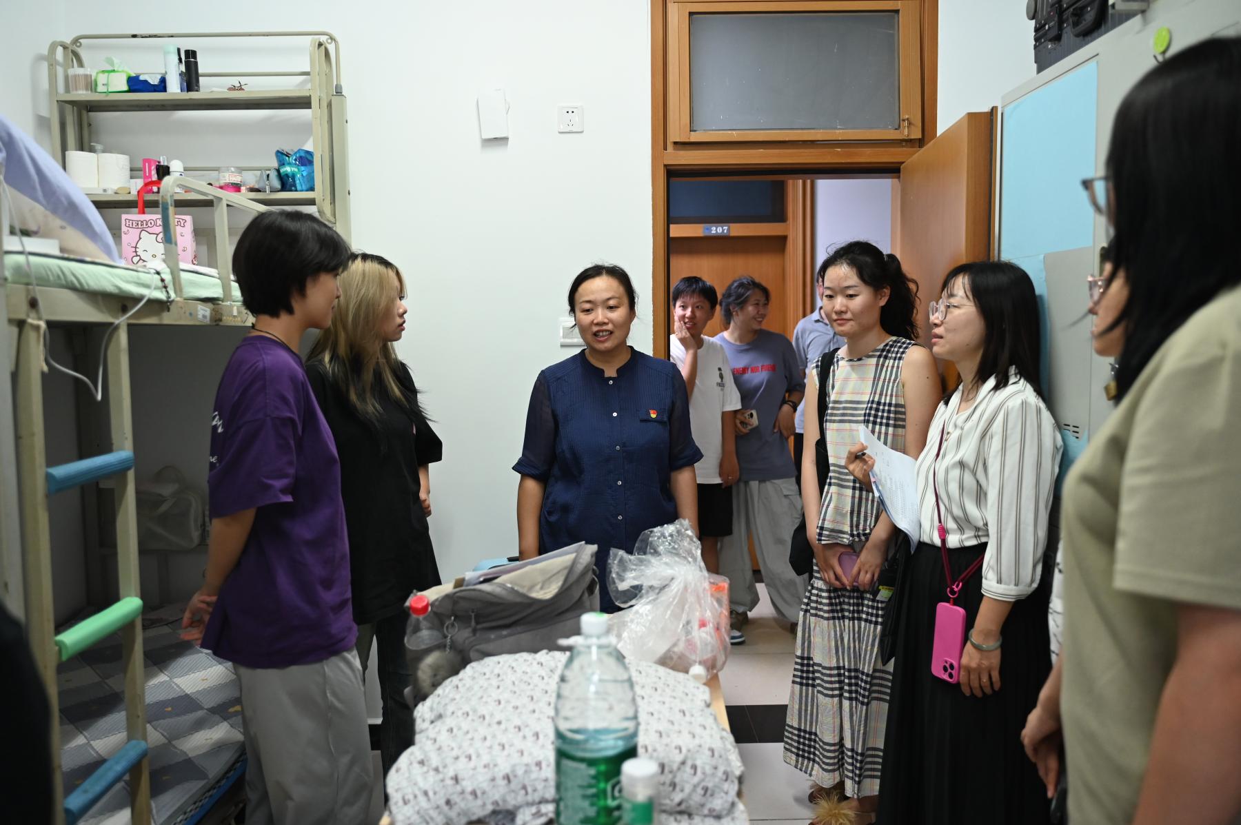 为加强与新生之间的沟通交流,更好地了解新生的住宿情况,传递温暖让新生更快地融入大学宿舍生活,深入了解新生生活状况以及宿舍情况,2024年8月31日 14:00 统计与数据科学学院党总支书记续杨,院长郭茜,党总支副书记甄姿,新生班主任刘洪伟、郭婧璇、鞠红梅、吴玉文,辅导员徐文彬及新生班主任助理们一同走访了2024级本科生和研究生宿舍,为24级小浪花们带来学院的亲切关怀。
