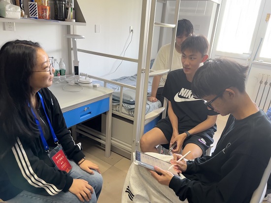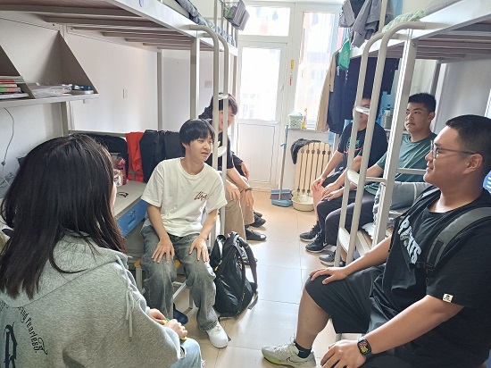 2024年9月25日中午,统计与数据科学学院党总支副书记甄姿老师和学生党支部书记、辅导员徐文彬老师与学生党支部青竹领航员共同深入新生宿舍,开展青竹领航共绘成长计划交流活动,旨在了解新生入学后的学习、生活适应情况,就学业规划、考研规划、人际关系等话题进行了深入细致地探讨。