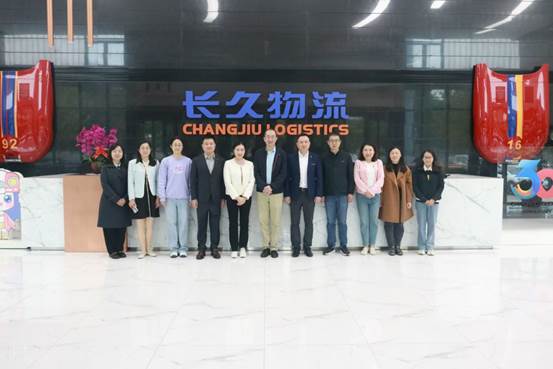 调研团队的到访表示热烈欢迎。随后副总裁朱静伟先生介绍了长久集团、长久物流三十年来的发展历程,对长久物流的主营业务、核心产品能力进行讲解。续杨书记介绍了此行调研的目的,韩嵩院长介绍了统计与数据科学学院的基本情况。随后双方着重就长久物流业务开展的具体场景与运行模式、数据分析及商贸流通人才需求与培养路径、校企合作的具体方式与途径等内容进行了深入交流,并达成强烈合作意愿。