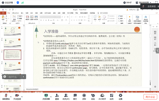 宣讲会上,侯瑞萱同学介绍了学校申请流程与前期准备要点。她表示,入学后学生需预约选课,学校通过系统进行学习管理,涵盖课程大纲展示、作业提交等功能。成绩评定包括作业、考试和项目等,课程内容丰富,形式多样。在生活方面,可选择校内宿舍或校外租房,周边交通便利。