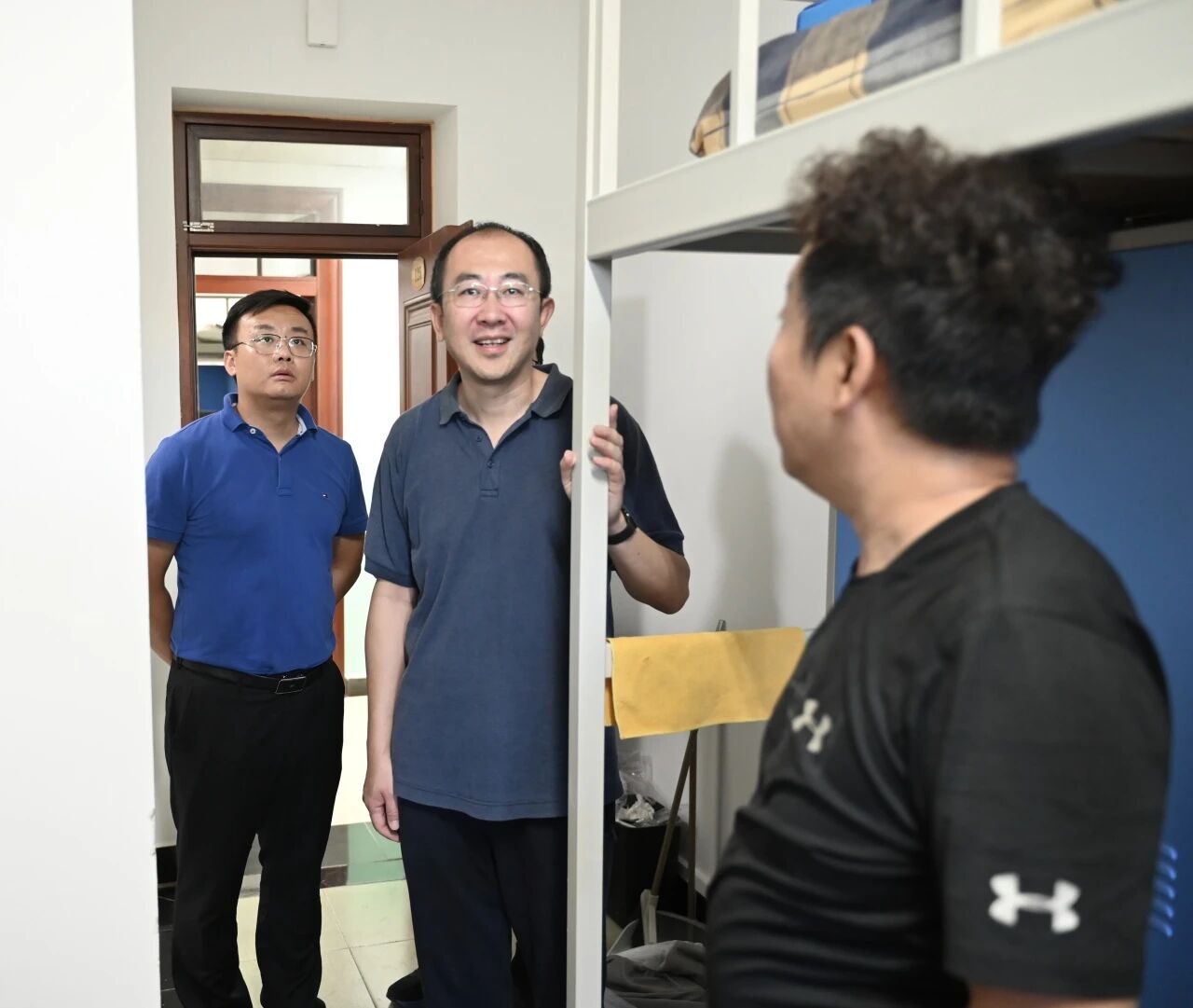 为扎实做好新生入学保障工作,增进与新生的情感联结,及时掌握新生住宿生活实况,帮助25级新生更快适应大学生活,2025年9月6日下午14:00, 欧乐影视 党总支书记续杨,院长韩嵩,党总支副书记甄姿,新生班主任张方风、熊辉、魏少杰、赵寅轩、王晓燕、郑豪、王静、齐凤华,辅导员徐文彬及新生班主任助理们,集中走访了2025级本科生、研究生新生宿舍,与“小浪花”们面对面交流,传递学院的亲切问候与温暖关怀。