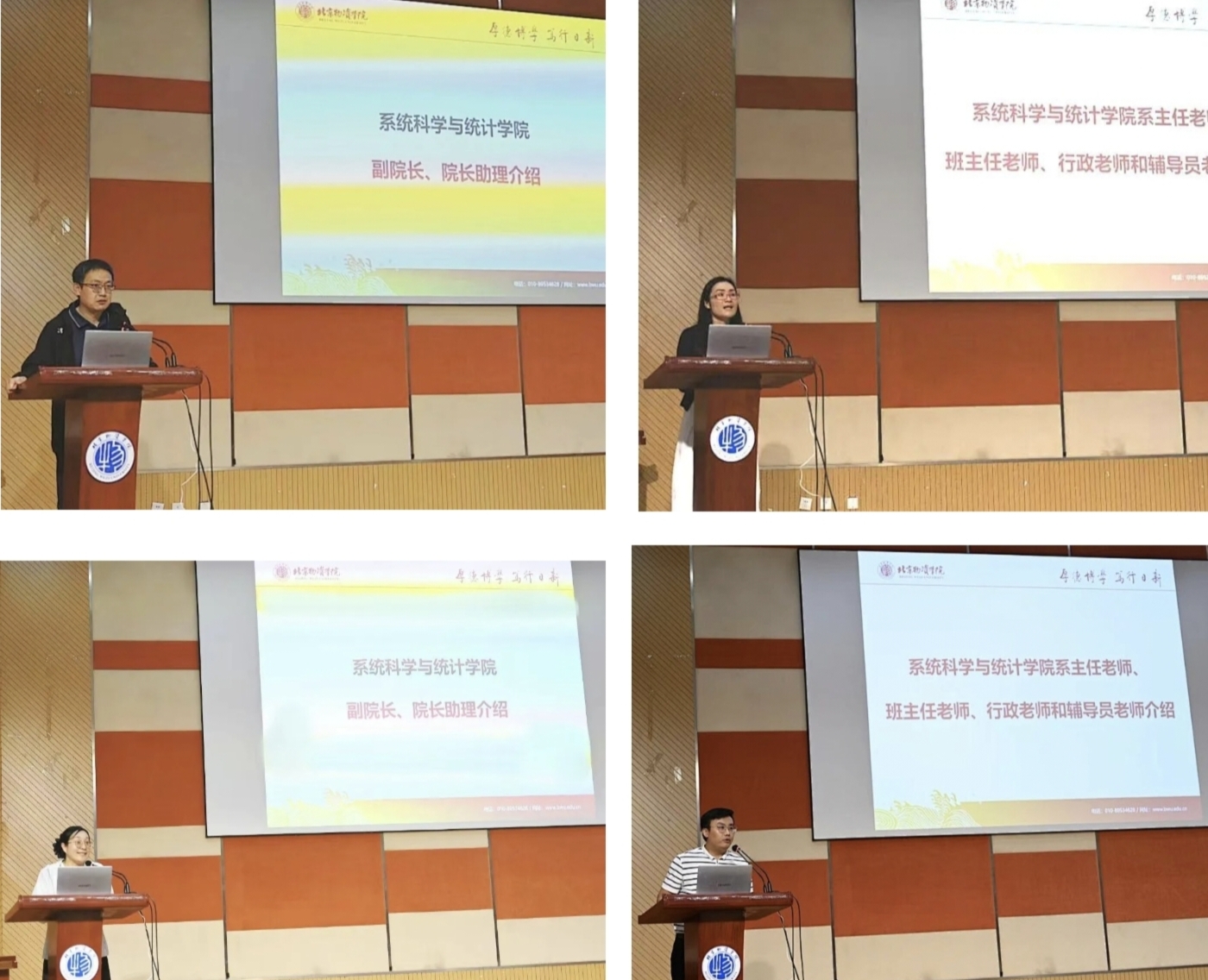 紧接着,副院长姜涛、院长助理尹洁婷,统计系负责人陶丽、大数据系主任沈丛丛,分团委书记徐文彬、党总支副书记甄姿依次上台讲话。他们分别详细介绍了各自分管的业务工作,为新生后续解决学业、生活等问题提供了清晰的对接方向;同时也为新生送上建议与祝福,他们鼓励大家积极参与实践活动与学科竞赛,在实战中锤炼能力、增长才干,期待同学们能在实践中收获成长,在大学生活中实现突破,拥抱美好未来。