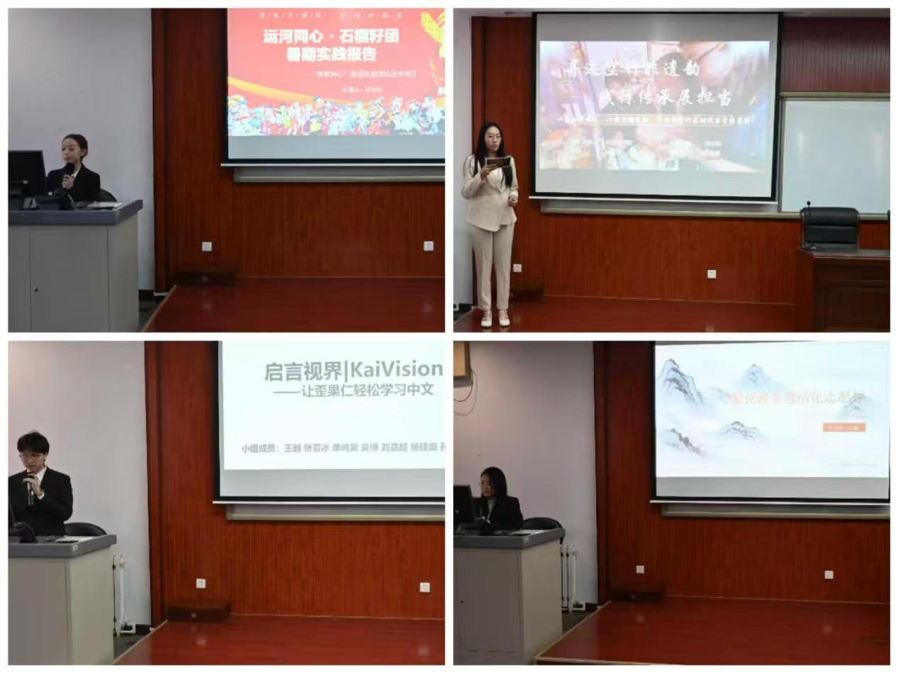 此次答辩会,17支队伍的选题丰富多样,涵盖了多个领域。从聚焦非遗传承,深入非遗宣传基地,通过实地调研和采访,收集了大量一手资料,为非遗的保护与传承提供了新的思路和方法;到以AI领航为主题,运用所学的系统科学与统计知识,深入群众,将知识应用实践。从致力于发扬民族团结,深入少数民族地区,了解当地的文化和习俗,促进了各民族之间的交流与融合;到运河文脉传承,对运河两岸进行考察,收集历史资料,挖掘运河文化的内涵,为大运河文化的弘扬贡献了自己的力量。此外,关于中外语言互鉴以及宣扬家风与乡德的团队,也通过各种实践活动,取得了丰硕的成果。
