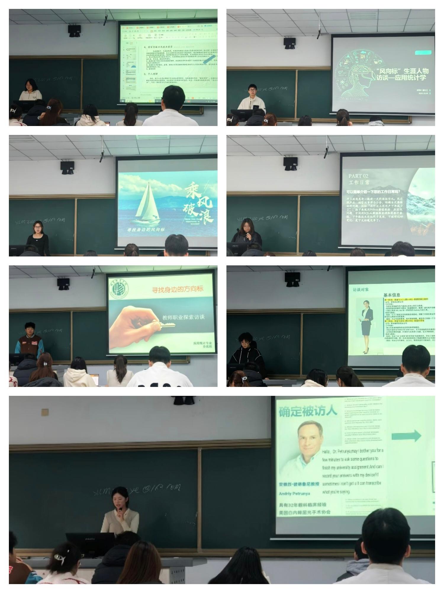 金融与医疗领域的分享同样精彩。聚焦风控专家的队伍,用真实案例展现统计学与数据科学在信用评估、风险预警中的核心作用,“每一个数据波动背后,都是对‘稳健’二字的坚守”;而对话医疗科研工作者的团队,则挖掘出统计方法在临床试验设计、疾病数据分析中的关键价值,让大家看到“冰冷数据也能温暖生命”,以及对于教师这一职业的访谈,教育不仅是知识传授,更是用耐心与责任陪伴学生探索世界,这份职业平凡却伟大。大家不仅透过数据分析师、教师等职业,看到了专业落地的鲜活模样,更对自己的专业有了深刻认知,这份 “选择即热爱” 的信念也愈发强烈。