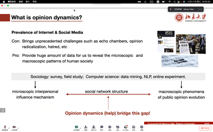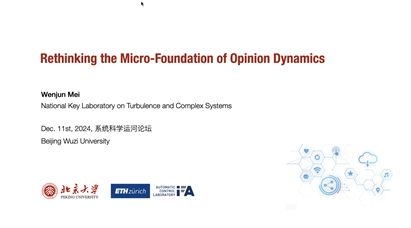 2024年12月10日,学校系统科学运河论坛(第七期)成功举办。北京大学工学院力学与工程科学系助理教授梅文俊受邀,围绕“观点动力学微观基础的再思考”开展线上学术报告,分享关于观点动力学的核心机制,并介绍基于加权中值机制的观点动力学新微观基础。研究生院常务副院长莫立坡教授, 欧乐影视