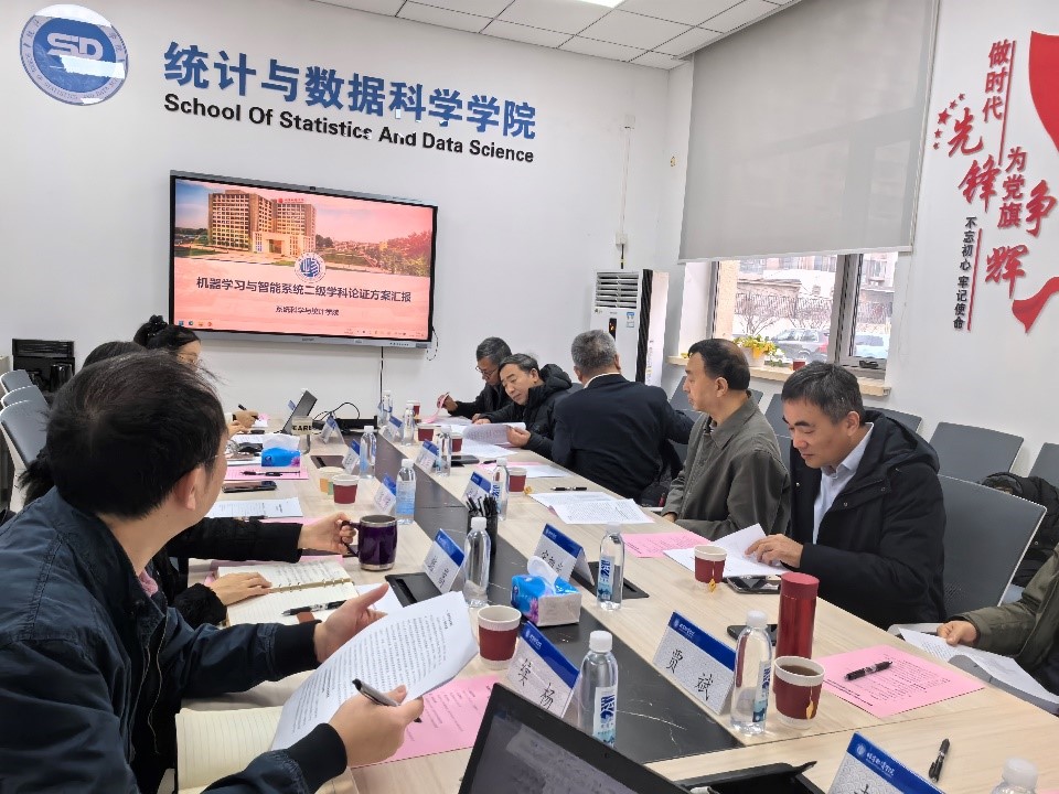 本次论证会特邀中国人民大学统计学院赵彦云教授,北京师范大学统计学院院长宋旭光教授,北京工商大学数学与统计学院执行院长曹显兵教授,北京交通大学系统科学学院副院长贾斌教授,中国科学院数学与系统科学研究院孙六全研究员、赵文虓研究员,北京工业大学应用数理学院程维虎教授到校,围绕“数据科学与智能系统”二级学科研究方向、培养方案、课程体系建设等进行深入交流与指导。