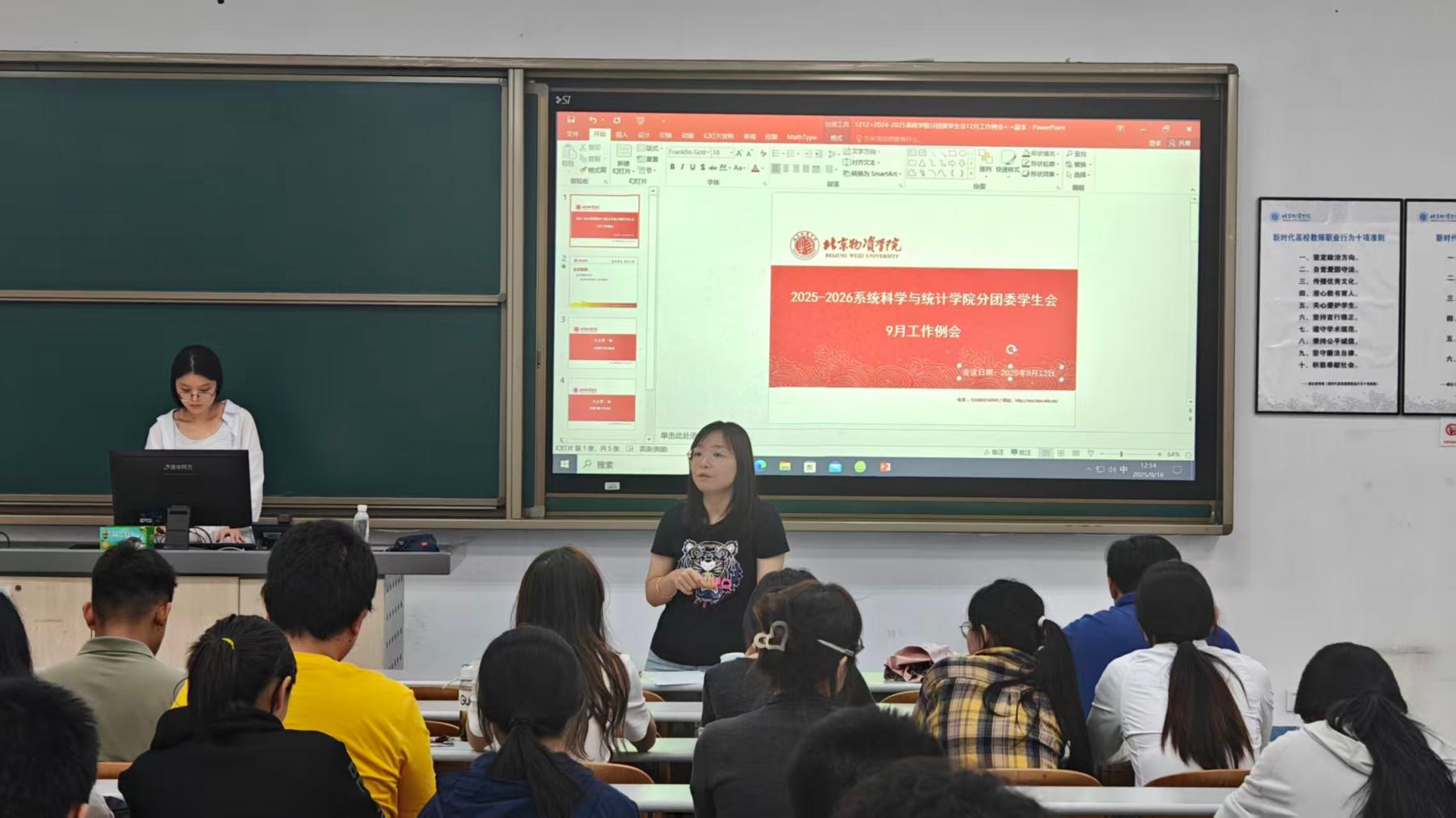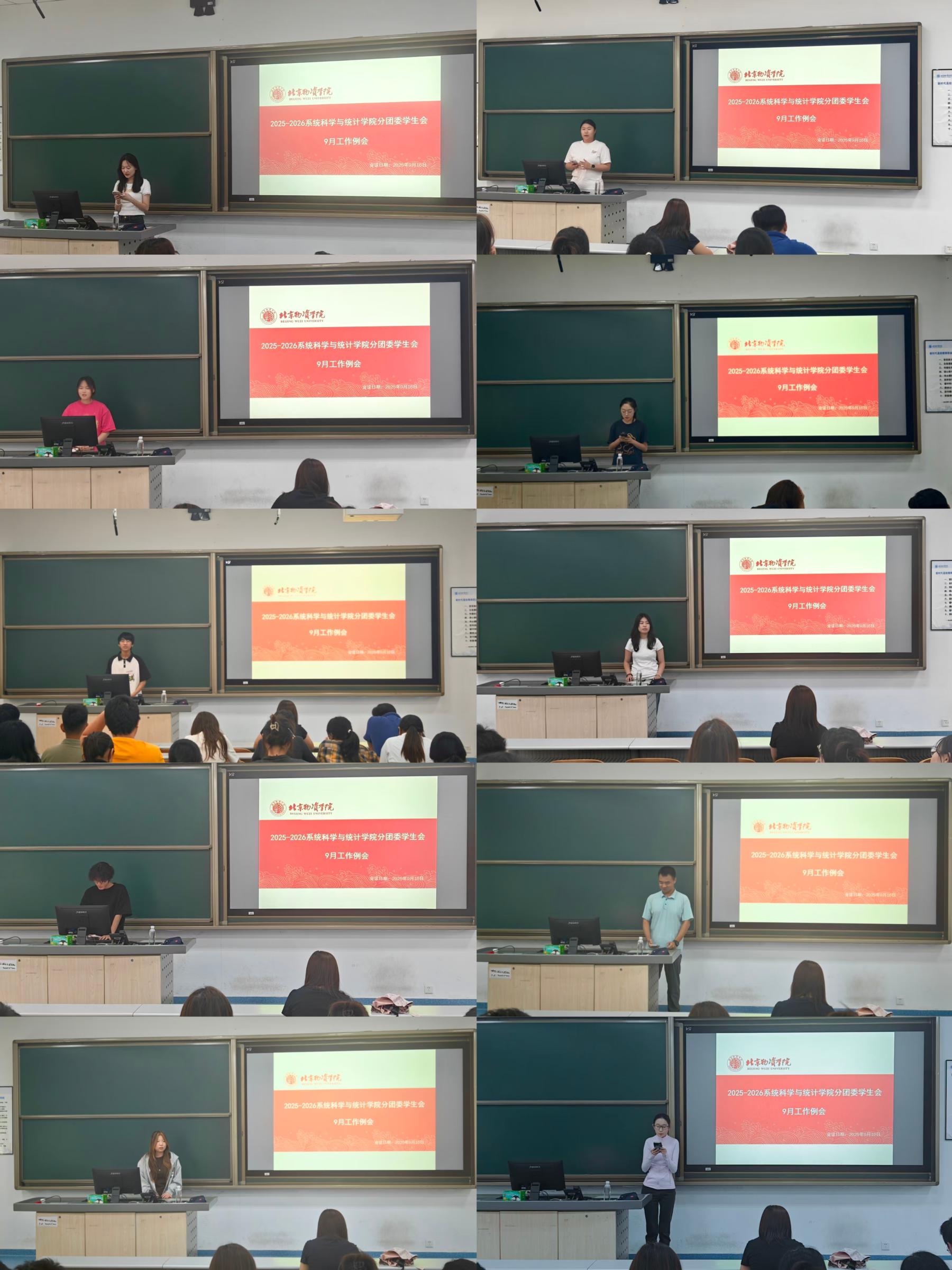 分团委学生会在二教105召开了2025—2026学年9月工作例会。学院党总支副书记甄姿、分团委书记徐文彬、副书记关雅文、高泽洲,学生会主席杨显婷、陈文娴、刘金莹、张彦菲,以及各部门部长、副部长、青竹领航员及研究生会成员共同出席了会议。本次会议旨在全面梳理近期工作成果,总结迎新工作中的经验与不足,并明确新学年的工作方向。