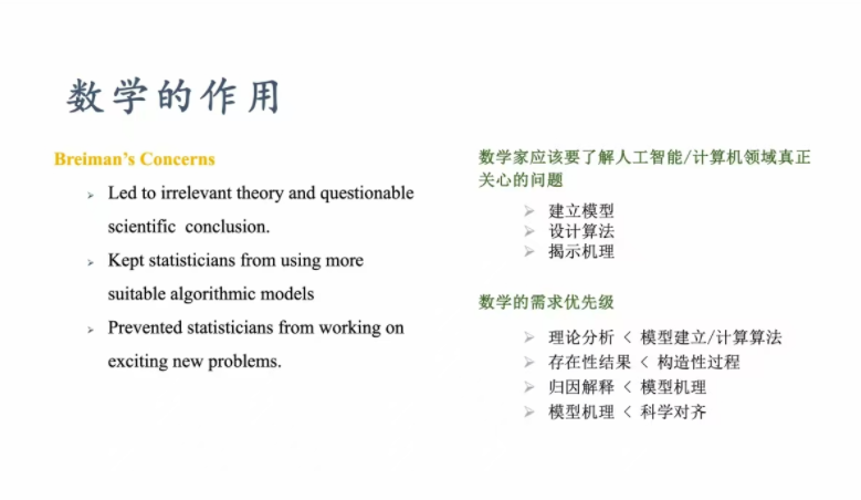 在讲座中,张志华教授从技术演进的角度系统梳理了现代人工智能的发展路径。他指出,当前人工智能的核心驱动力来自机器学习,尤其是基于计算机视觉、自然语言处理与语音识别技术的多模态数据融合现实交互系统。张教授进一步指出,人工智能与机器学习面临两大关键挑战:一是何种架构能有效支持“数据处理与聚合”的可操作性,二是何种训练准则能实现“学习系统与外部世界的有效对齐”。他强调,深度学习与强化学习为第一个问题提供了方法支撑,而计算学习理论与统计学习理论则试图回应第二个问题。