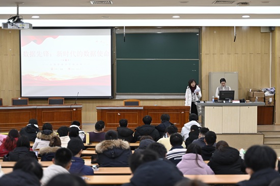 院长韩嵩教授以“数据先锋:新时代的数据使命”为主题讲授专题党课。培训由系统党总支副书记甄姿主持,辅导员樊广超、学院全体入党积极分子参加学习。