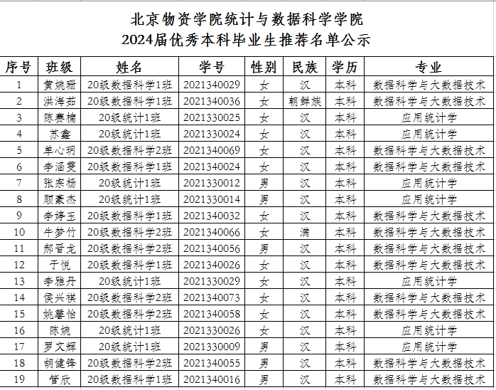 有5个市级优秀毕业生和5个校级优秀毕业生的评选名额(最终名额以学校评定为准),现对申请统计与数据科学学院2024届优秀本科毕业生进行推荐公示(根据公示结果结合毕业论文成绩占比20%,按照排序,排序靠前的优先推荐参评各类奖项):