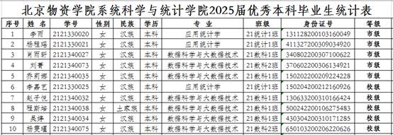 经所在班级民主评议提名、个人申报、学生工作办公室审核材料、学院学生奖励资助工作领导小组进行资格审查召开学院评审会,现对符合条件的2025届优秀本科毕业生进行推荐公示: