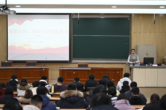 院长韩嵩教授以“数据先锋:新时代的数据使命”为主题讲授专题党课。培训由系统党总支副书记甄姿主持,辅导员樊广超、学院全体入党积极分子参加学习。